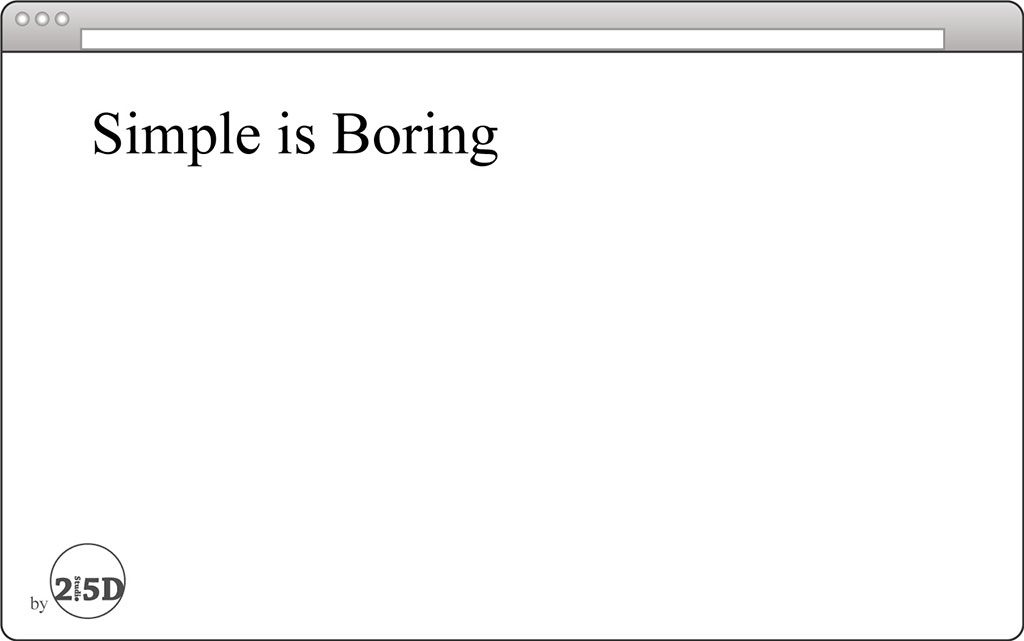 網頁設計沒有顏色配置, 光靠好的攝影不會成就好的網頁設計,並且造成單調沒有特色,時下網頁設計風格中常是處於煩雜與單調的兩種極端,由此觀察原因是設計者無法專注設計,事業投入資源(人才、經費與時間)不足所致,然而簡單設計帶來好製作、省時間的方式,也導致畫面單調無聊的效果,無聊的網站就等同是無聊的品牌。