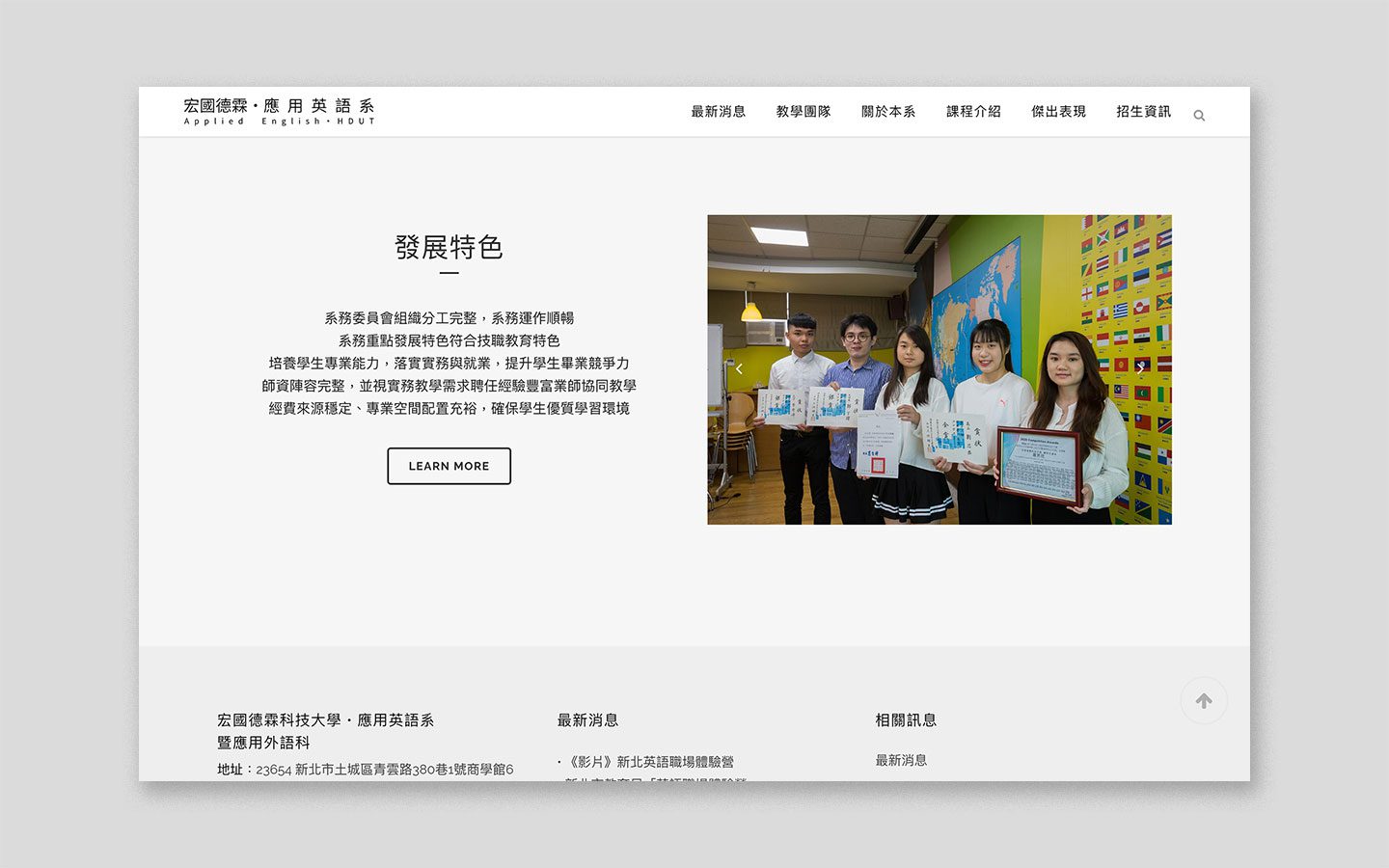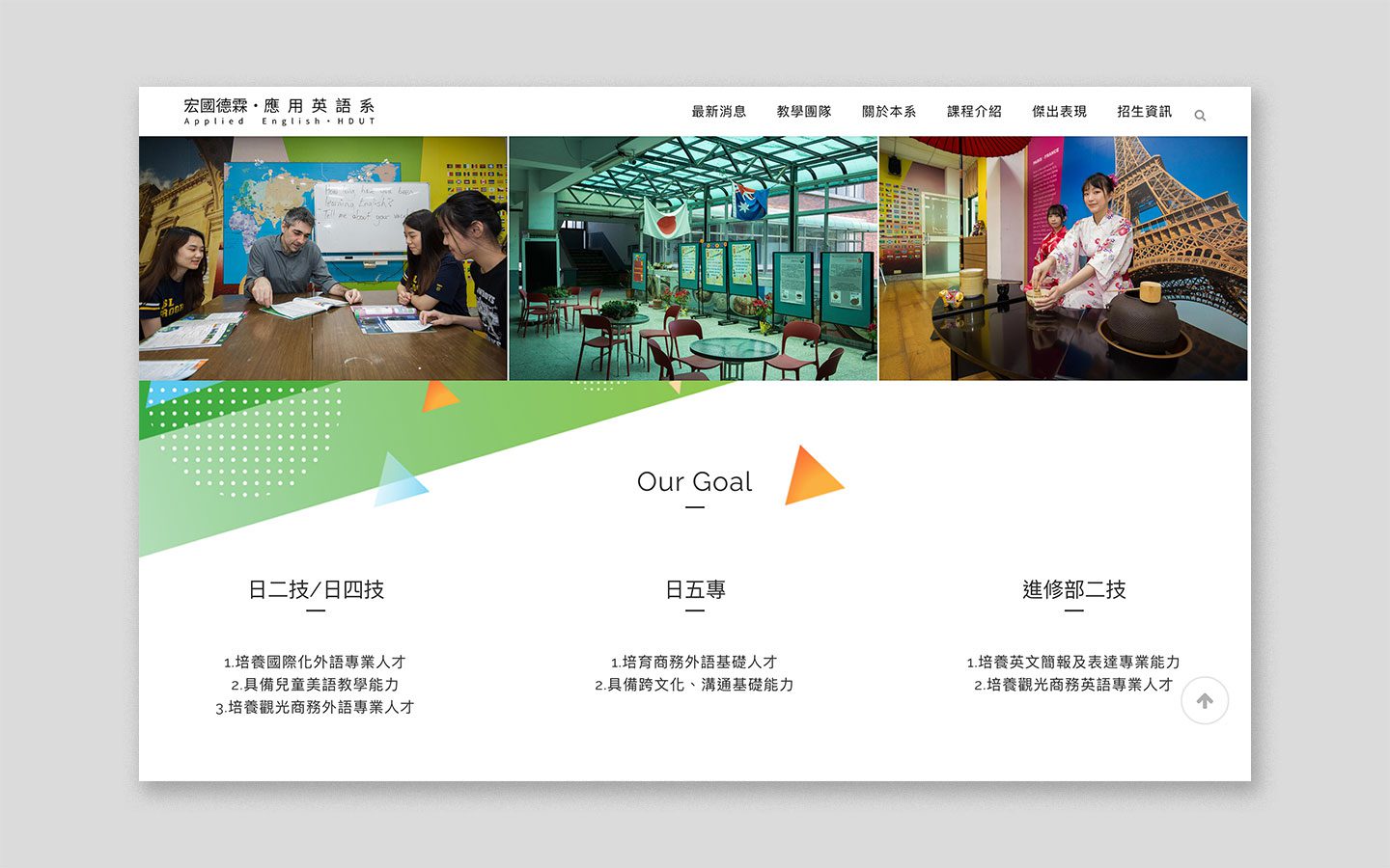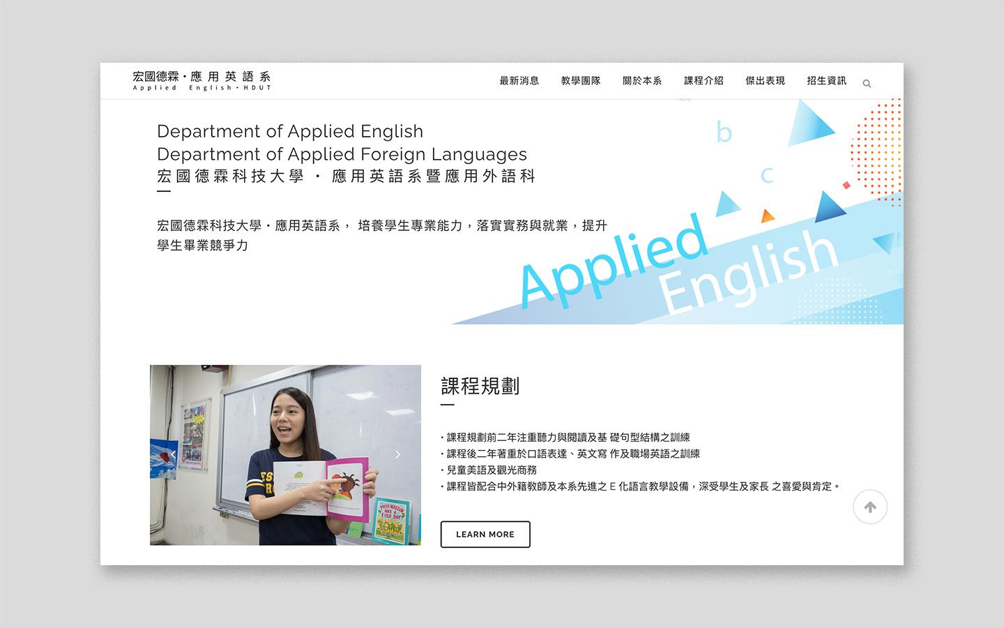 網站介紹:宏國德霖科技大學 • 應用英語系暨應用外語科 – 應英系課程規劃前二年注重聽力閱讀及基礎句型訓練,後二年著重於口語表達、寫作及職場英語訓練。兒童美語及觀光商務,中外籍敎師及本系先進之E化語言教學設備。(北台灣、台北、新北) 的應英系。