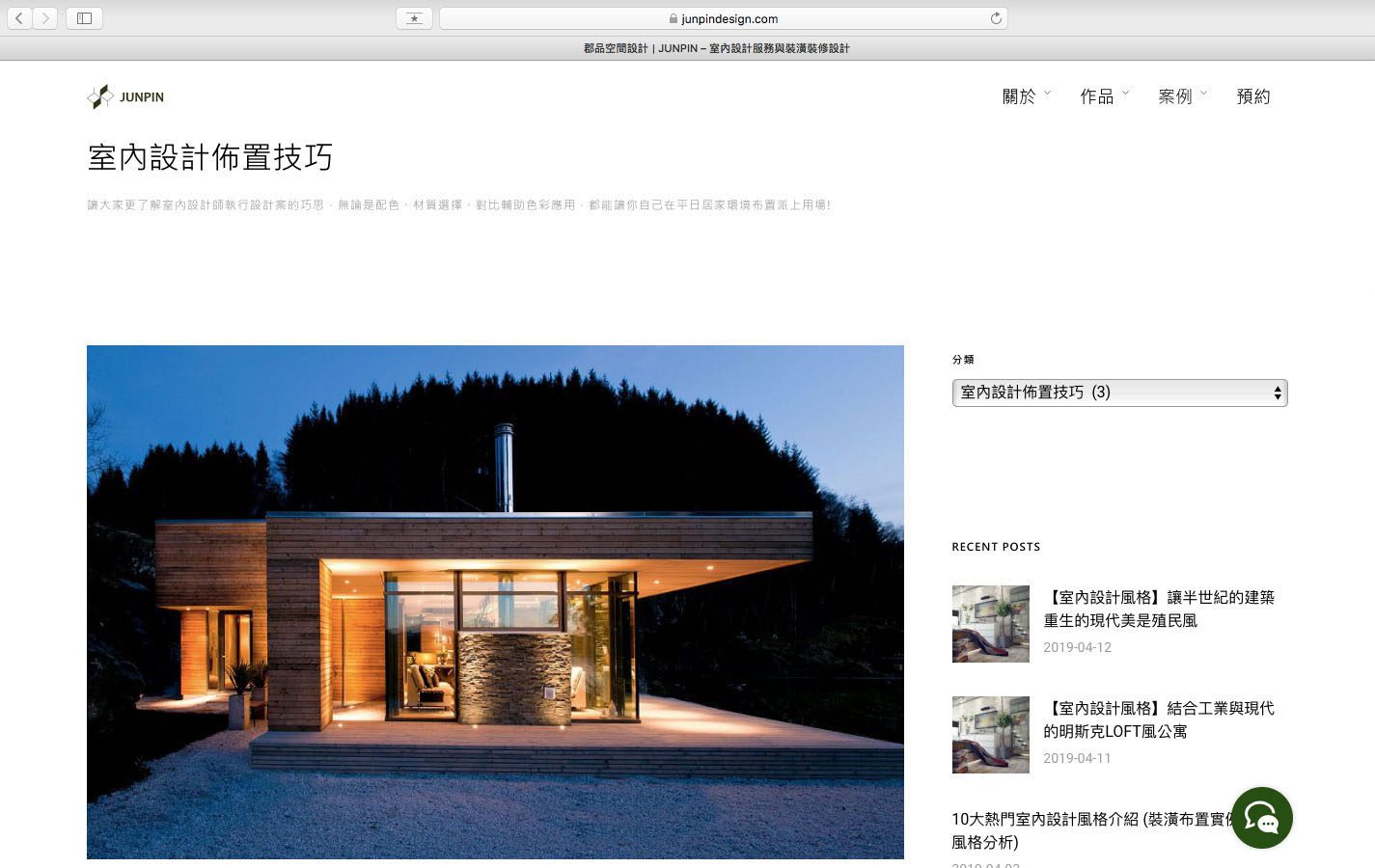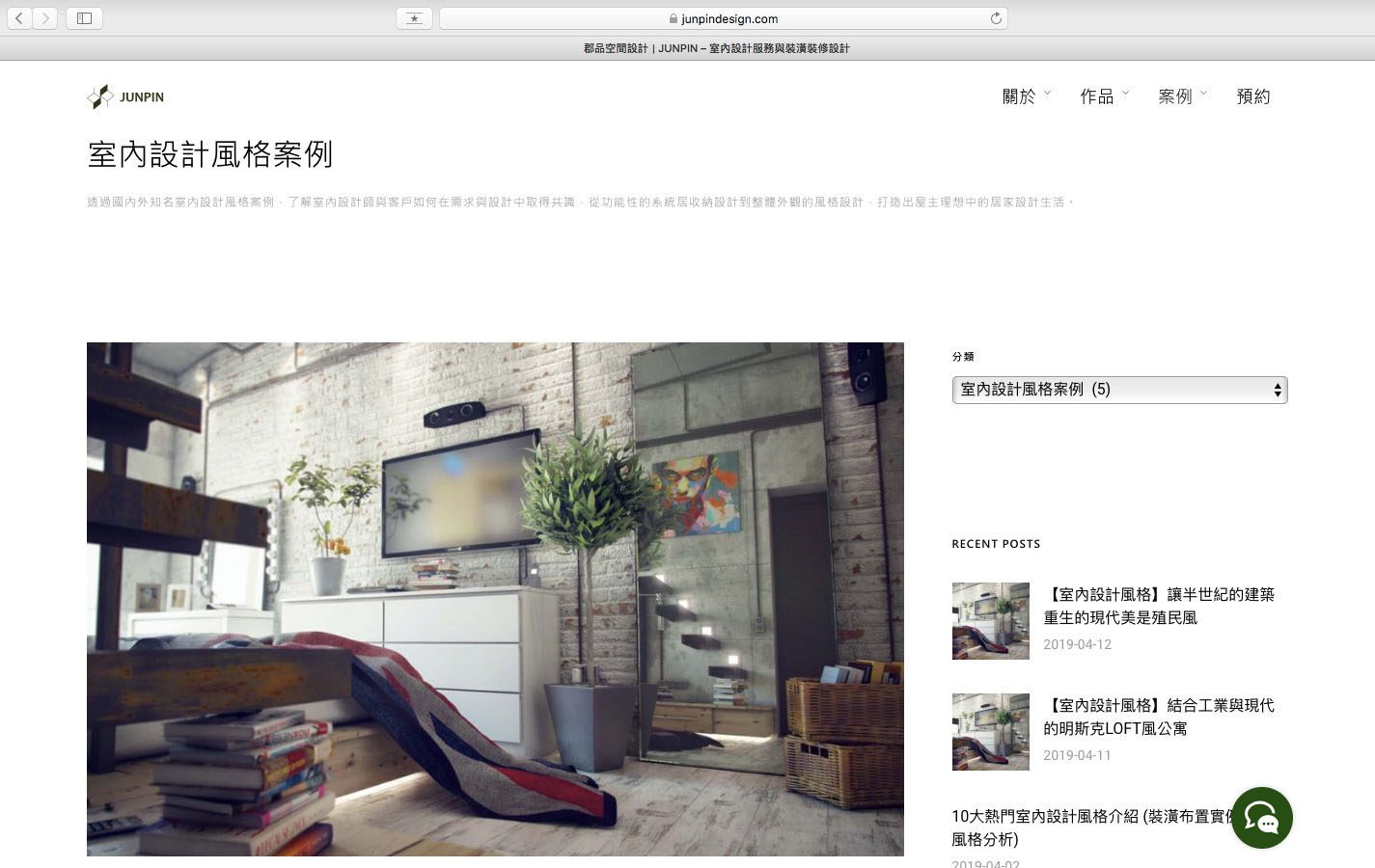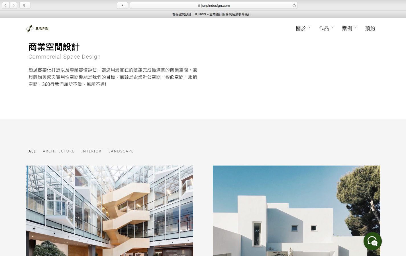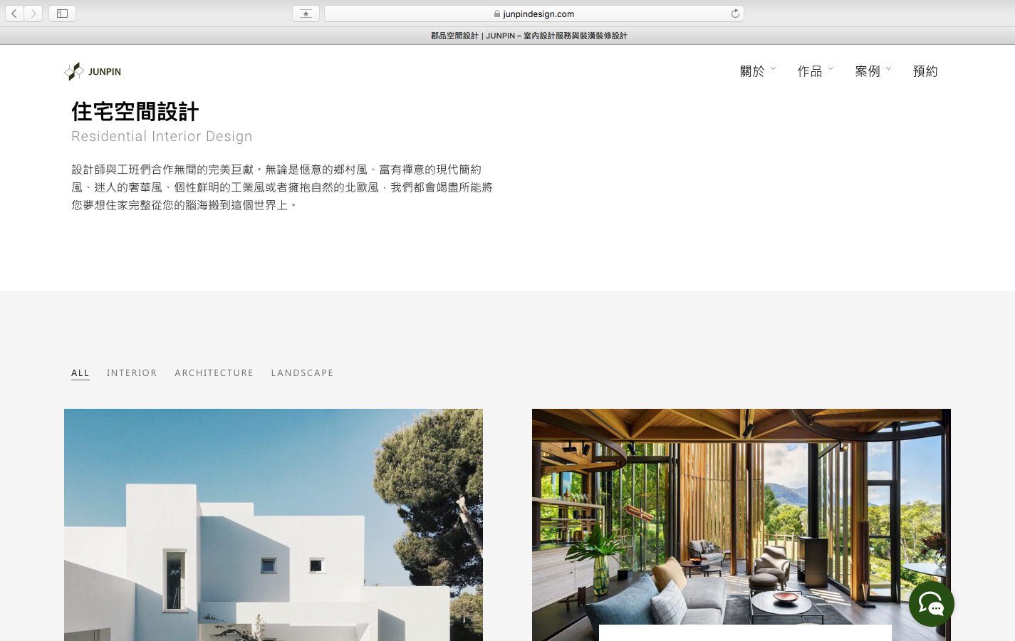 空間室內設計網站作品案例:JUNPIN室內設計(網頁設計、公司形象網站)