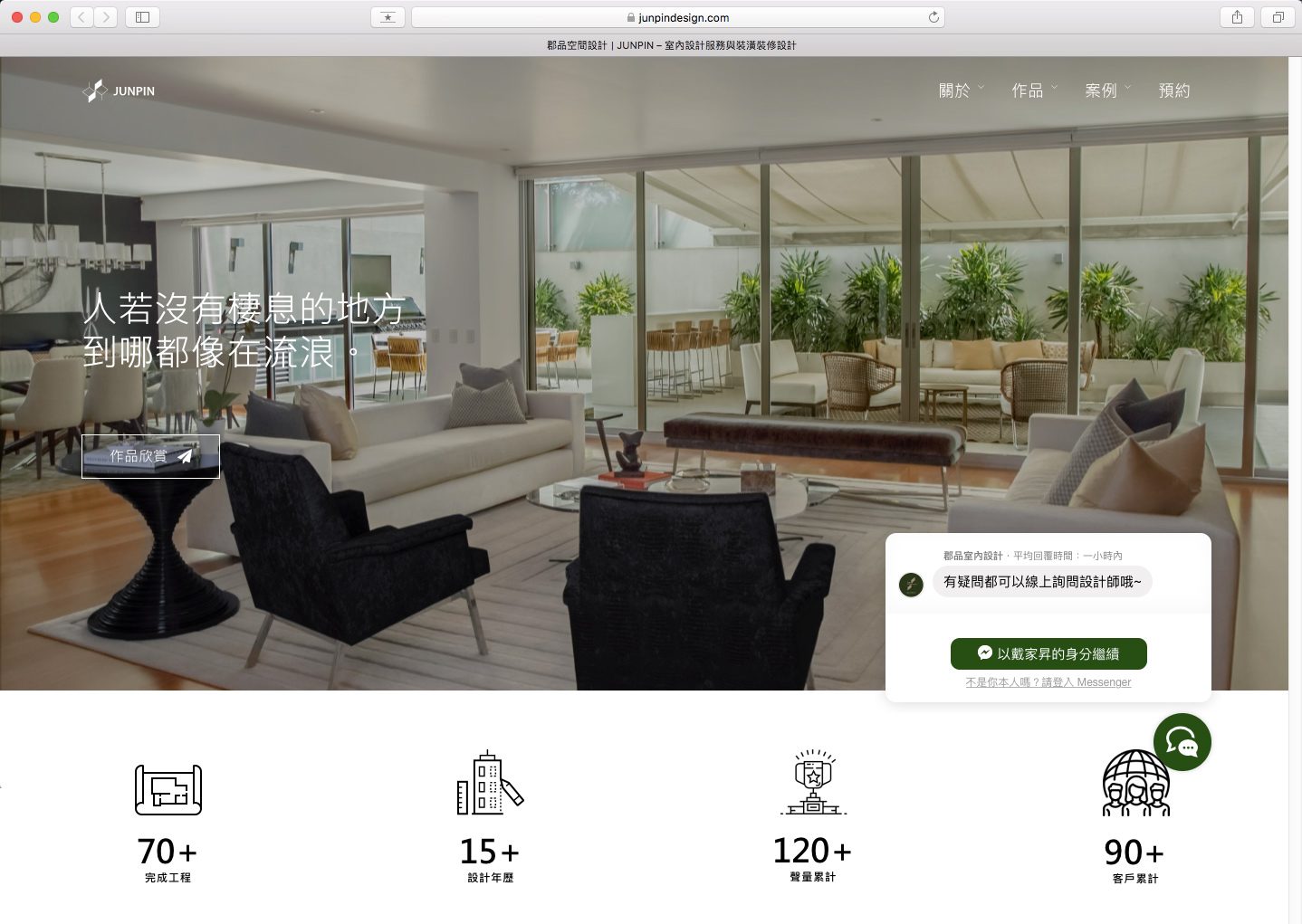 室內設計客戶推薦美學設計公司與工作室數位化轉型的成功案例,郡品空間設計(JUNPIN 室內設計)委託我們完成其室內設計特色形象網站的網頁設計,網站展現專業的室內設計與空間設計美學氛圍。這件作品案例不僅融合品牌風格、視覺整體感,也兼顧使用者體驗與導覽結構,是我們替設計公司所打造的成功的數位展示平台案例。透過精準的版面編排與內容策略,我們為郡品空間設計打造具市場差異化的線上門面。若您正在尋找優質的網頁設計公司合作夥伴,本次案例是您值得參考的設計推薦作品。