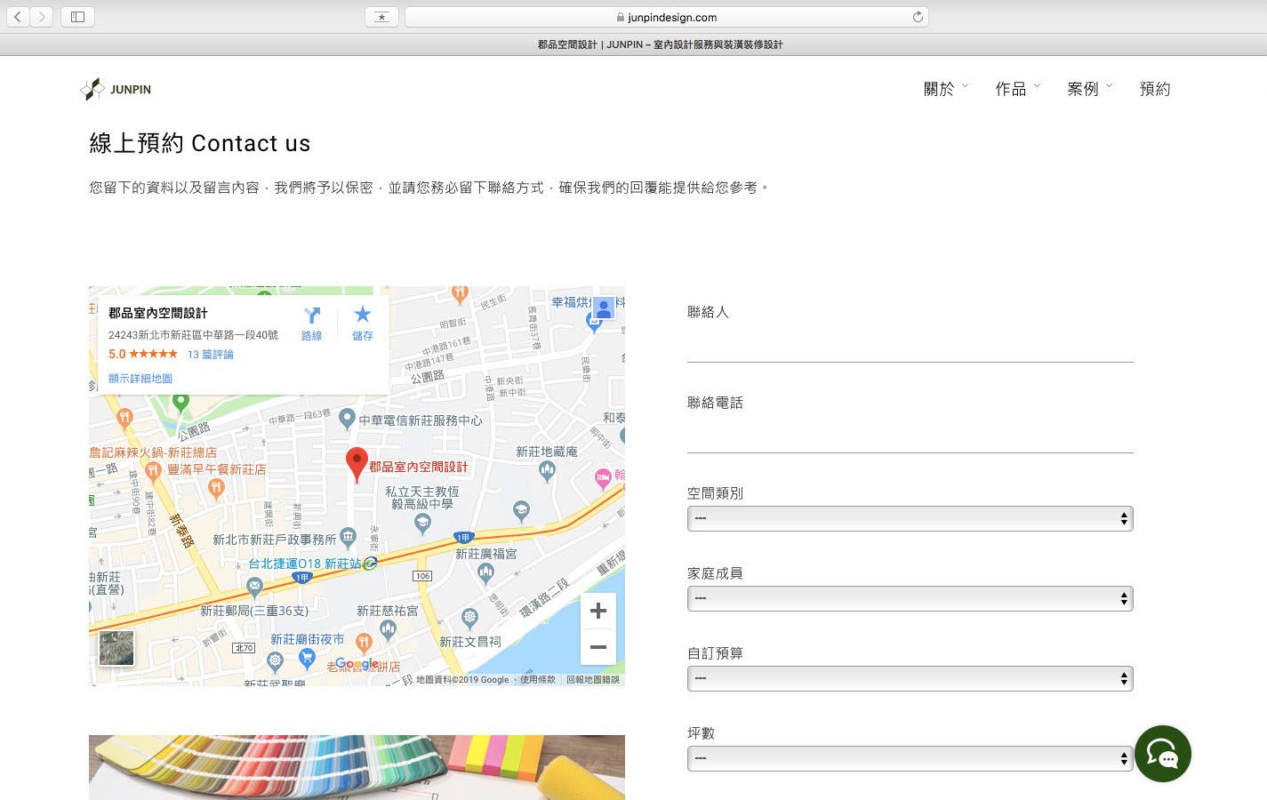 空間室內設計網站作品案例:JUNPIN室內設計(網頁設計公司形象網站