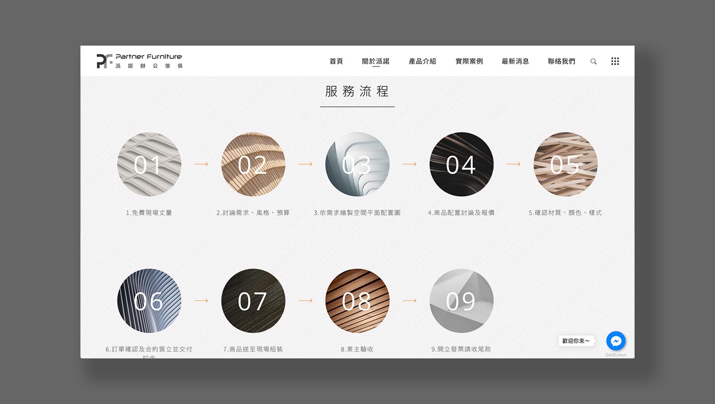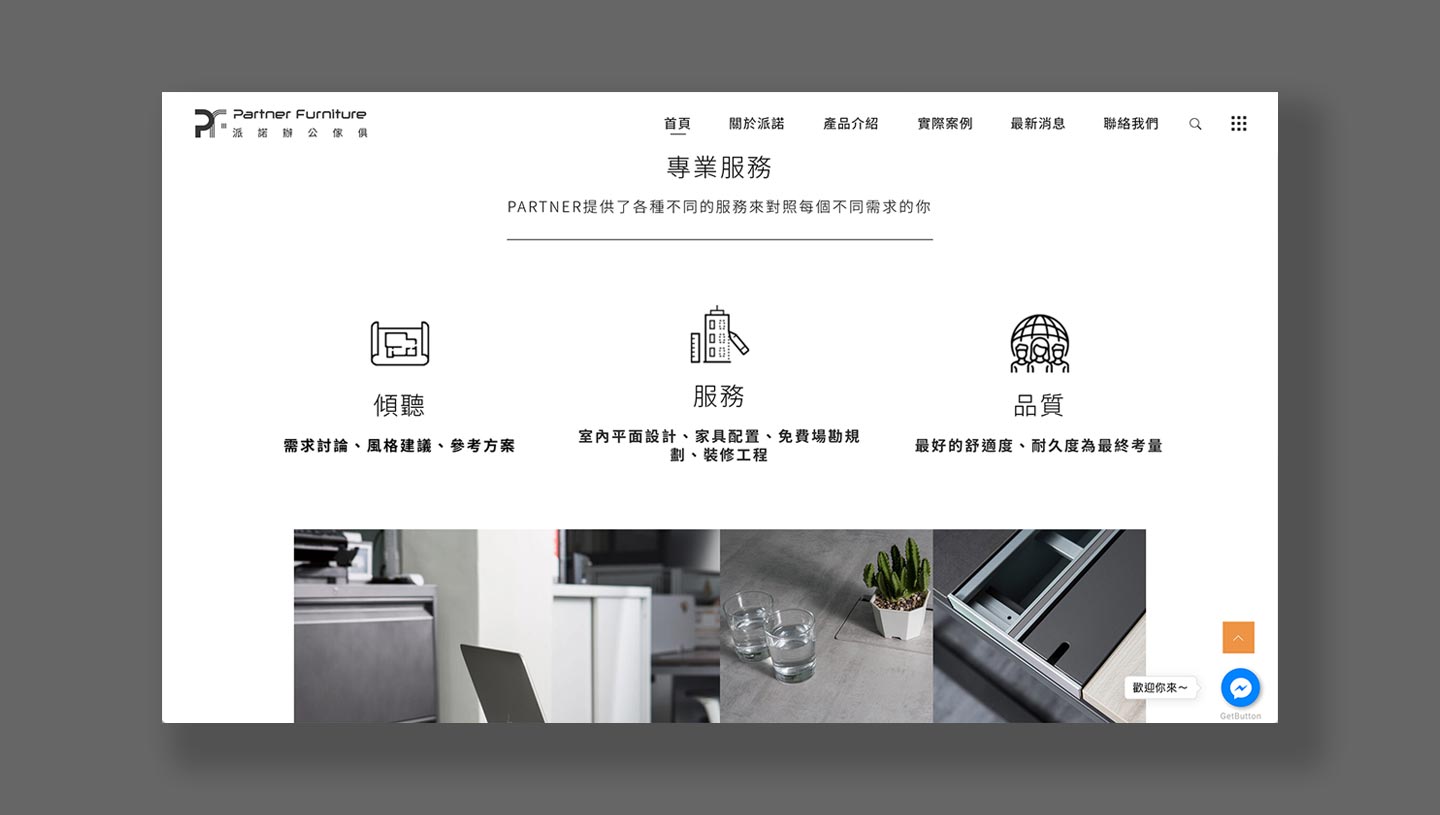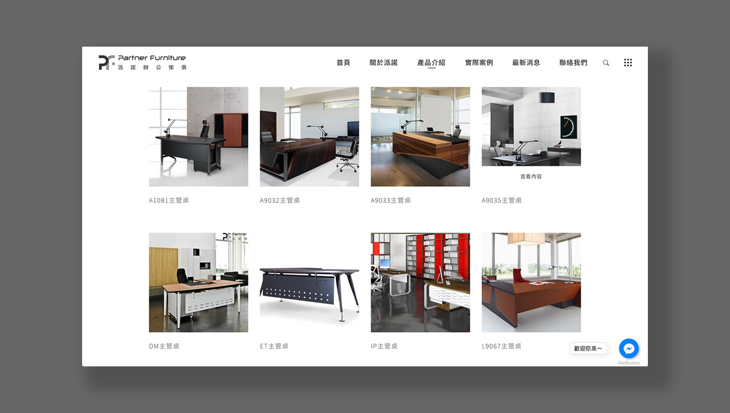網頁設計作品集範例:Partner Furniture 派諾辦公傢俱-網頁設計/公司品牌設計/形象攝影