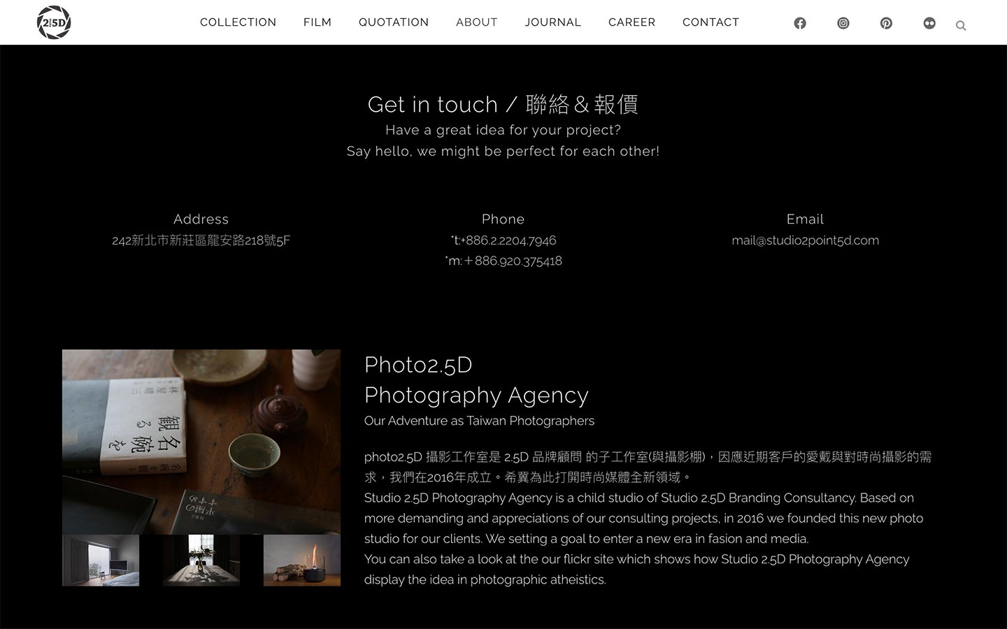 攝影作品集網頁設計公司範例:photo2.5D 攝影工作室