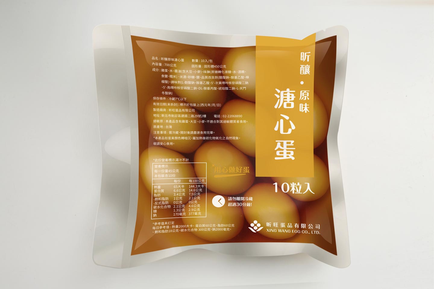 本商標以「蛋品本質 × 用心守護 × 永續價值」為核心理念,透過極簡而富象徵性的視覺語言,傳達昕旺蛋品對品質、專業與信任的長期承諾。