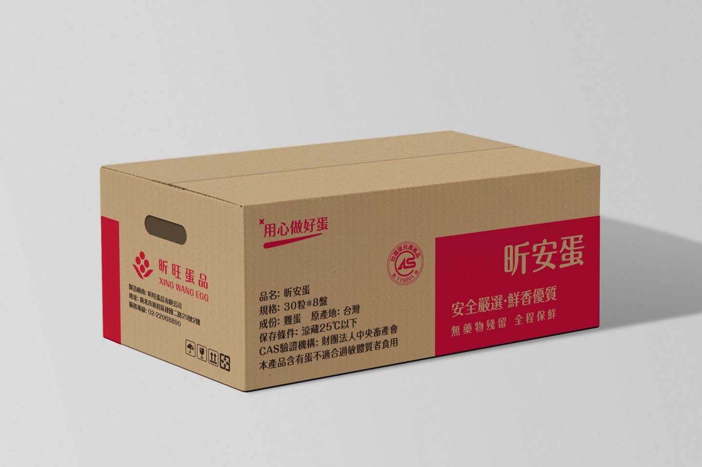 整體商標設計簡潔而耐看,具高度延展性,適用於包裝、印刷、數位媒體與企業識別系統,象徵昕旺蛋品以穩健步伐,持續為市場提供值得信賴的優質蛋品。